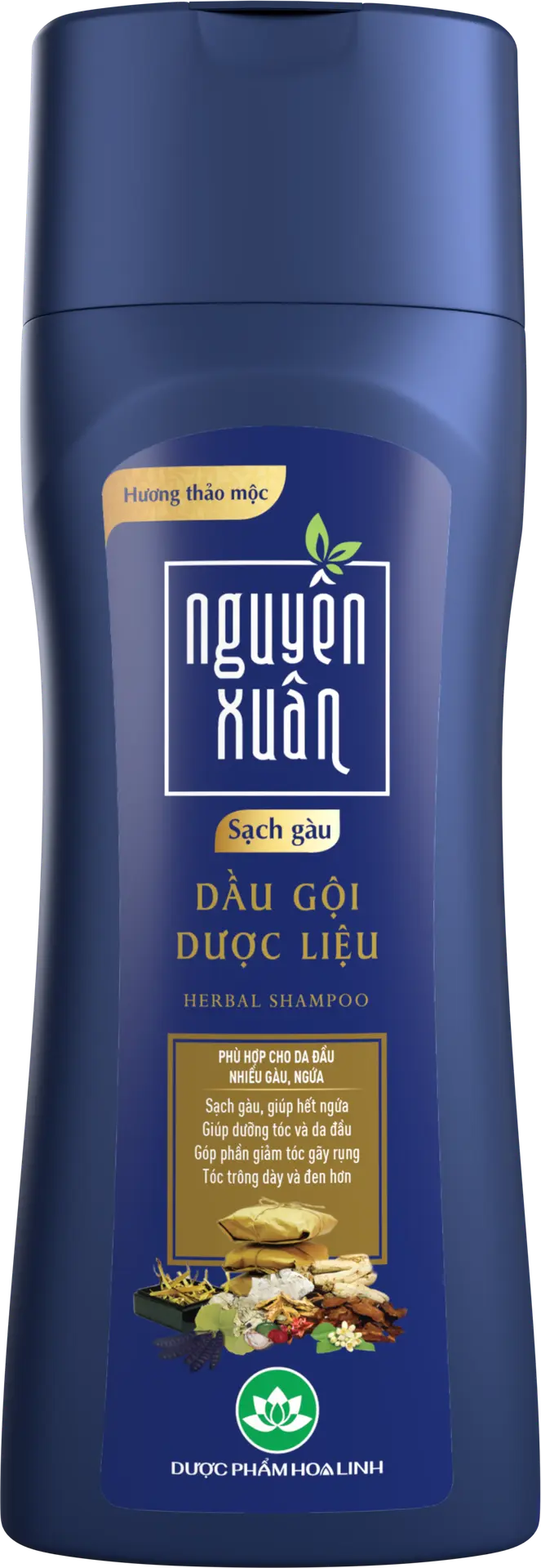 Dầu gội dược liệu Nguyên Xuân xanh sạch gàu hương thảo mộc nắp bật chai 260g Hoa Linh