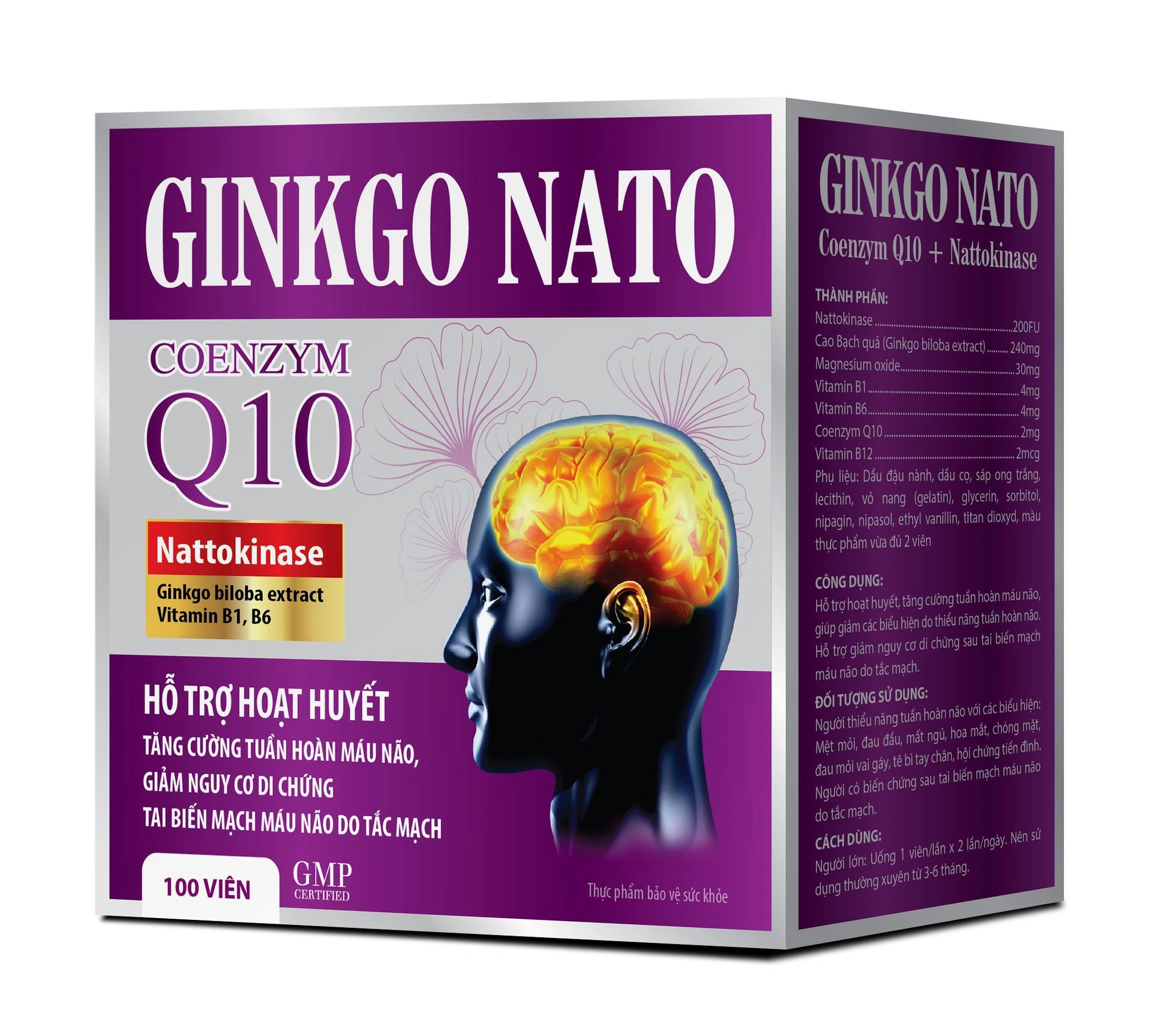 Ginkgo Nato Coenzym Q10 240mg tím hộp 10 vỉ x 10 viên nang Tradiphar
