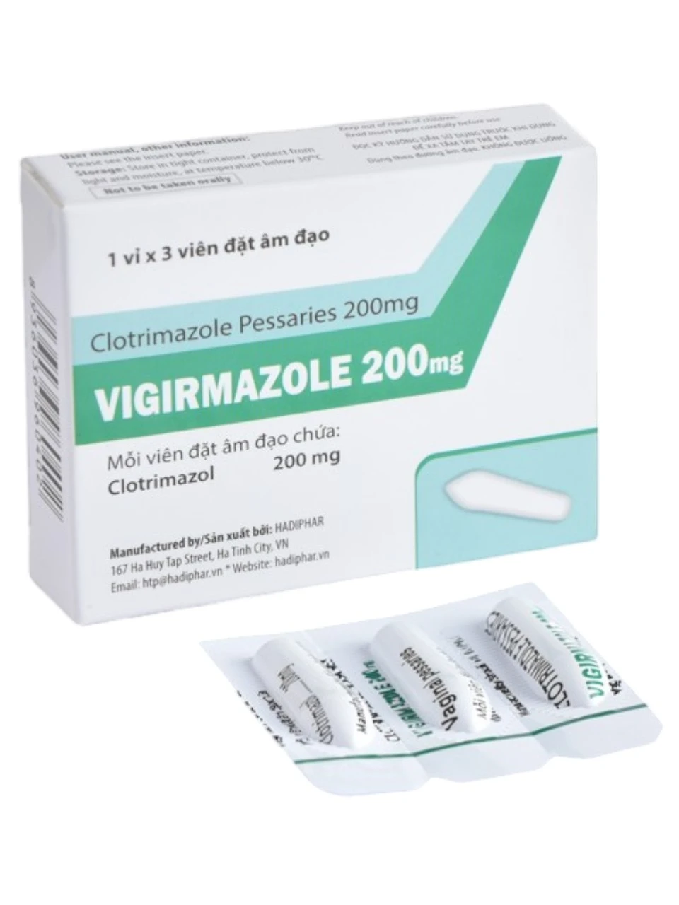 Vigirmazole Clotrimazole Pessaries 200mg hộp 1 vỉ x 3 viên đặt Hadiphar